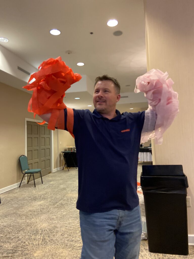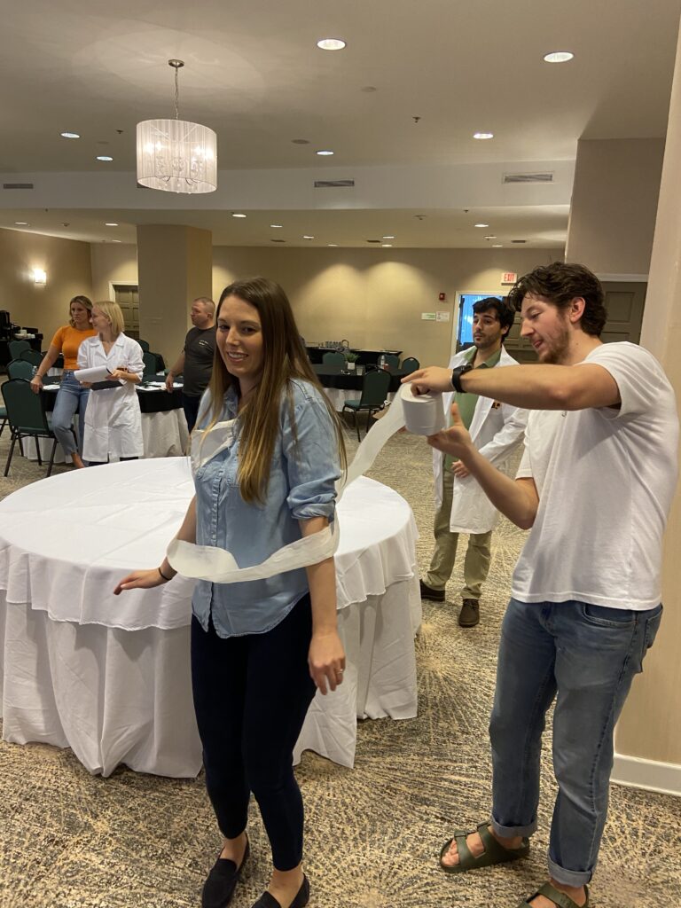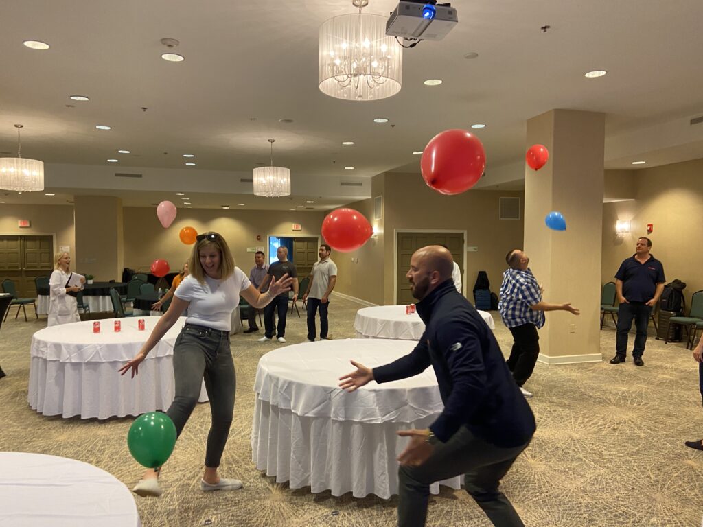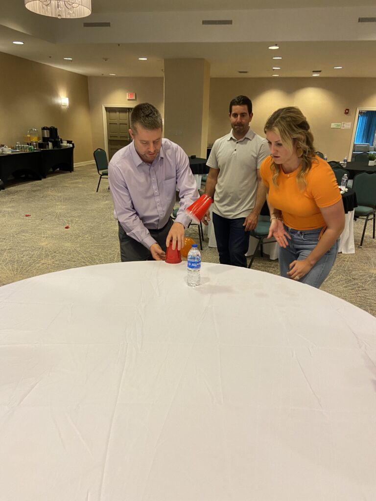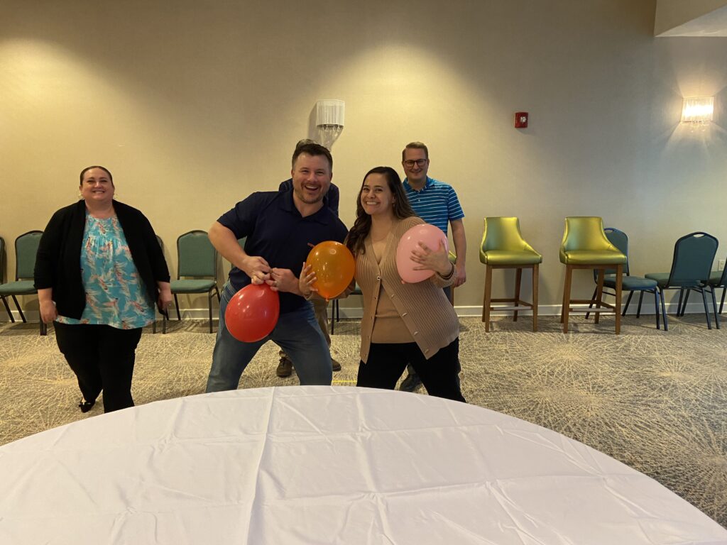 Finally, our two-day event wrapped up with a teambuilding exercise. Minute Wars broke our group down into cross-department teams and challenged us to work together to outperform our rivals in short games. Whether it was wrapping a teammate in toilet paper, trying to keep multiple balloons in the air or building a skyscraper out of note cards, each team got to laugh while stepping outside their comfort zone.