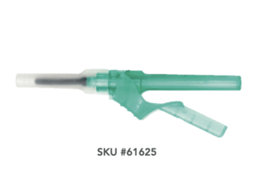 Our Safety Straight Needles have a hinged safety shield with an extra-large finger grip for control and provide an audible click, so you know the safety feature is locked securely in place.