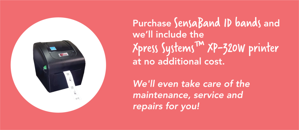 If you purchase SensaBand ID bands, we’ll include the Xpress Systems™ XP-320W printer at no additional cost. We’ll even take care of the maintenance, service and repairs for you!