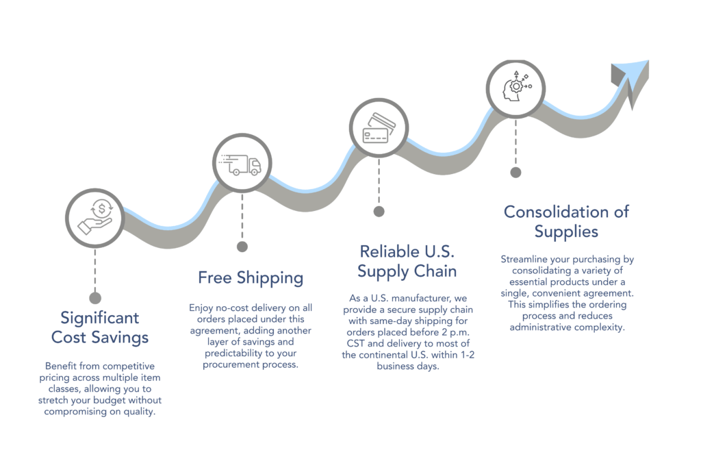By consolidating these essential items under one agreement, you can ensure product standardization and quality across your facility. To ensure our products are the right fit for your needs, we are pleased to offer free samples upon request.