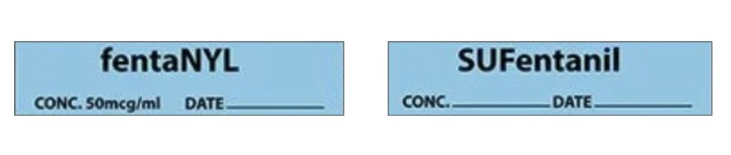 - For the Clinician: ASTM D4774 – Governs the specific color, size, and layout of user-applied labels to ensure universal recognition. Our labels utilize Tall Man Lettering (TML) to visually differentiate look-alike, sound-alike drug names like fentaNYL and SUfentanil, reducing the risk of a catastrophic mix-up before it starts.