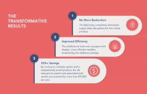 This exact cycle of disruption was the daily reality for a large regional reference laboratory we recently worked with. They faced continuous backorders and were regularly placed on allocation for their blood collection needles. The uncertainty made it impossible to plan, causing an underlying fear of a complete stockout that risked disrupting their entire operation. Recognizing that this instability was unsustainable, they sought a partner who could provide more than just a product, but a reliable system.